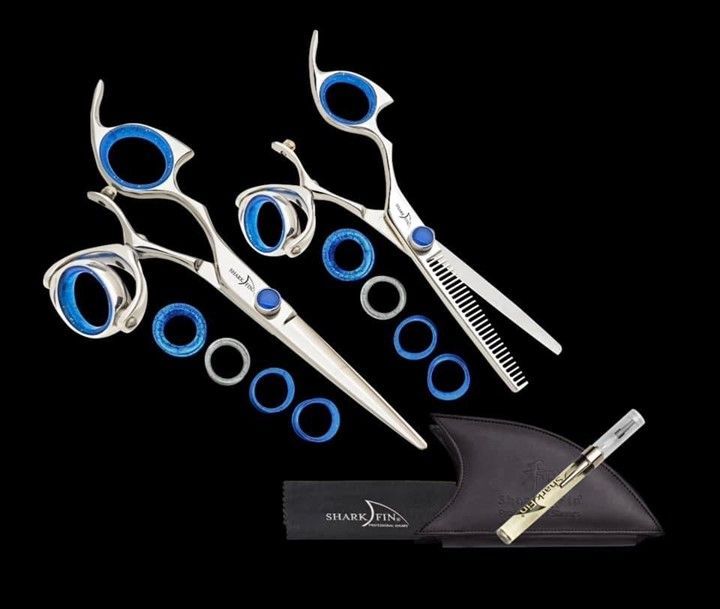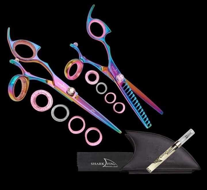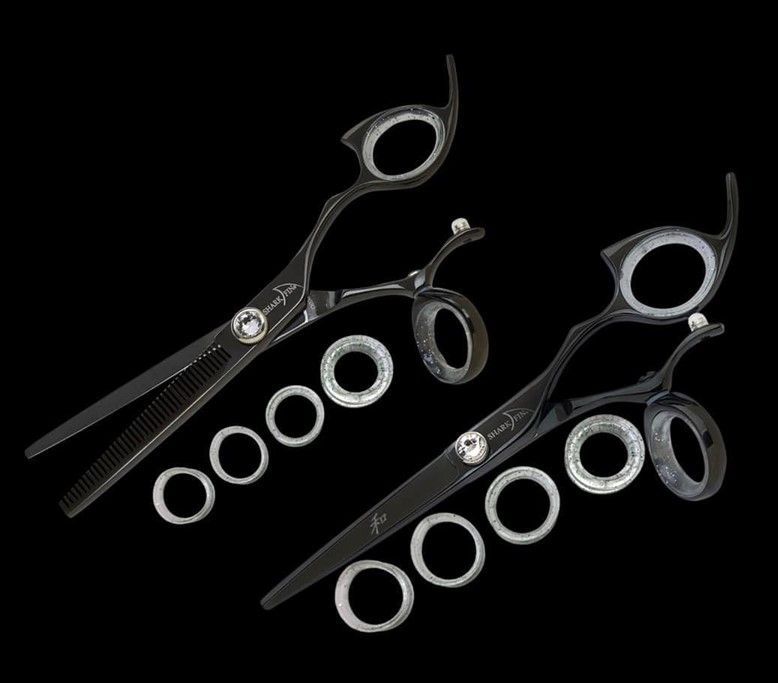 Shark Fin Shears innovative handle combined with our patented shear fit finger system offers the professional stylist the ONLY true ergonomically designed shear in the world today. Shark Fin Shears are made form the highest quality 44-A, 440-C,VG10, and ATS-314 Japanese HITACHI/AICHI/YAMAMURA steel to insure unmatched razor-sharp convex edges. The handles are made separately from the blades and then are hand-welded together, giving Shark Fin Shears excellent balance and tuneability.
